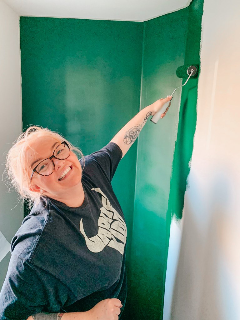 We celebrated having our house for ONE WHOLE YEAR in May by getting the paint brushes out and finally starting to decorate a little. They advised us to wait a while for the walls to settle with it being a new build, and a year felt like long enough! We’ve started with our downstairs toilet and I can’t wait for you to see it once it’s finished. Tell you what as well mind – it was a bloody good workout!