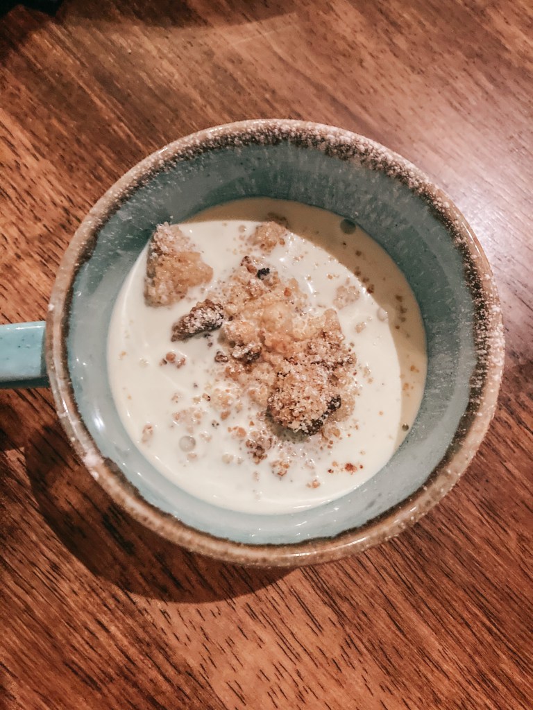 By this point as you can imagine we’re starting to get VERY full…but there’s always room for dessert right?! We were able to try three desserts from the menu including Fruit Crumble, this one was apple and cinnamon, Freshly Cooked Donuts with strawberry curd and everyones favourite dish of the night – White Chocolate and Orange Bread and Butter Pudding!! When I say it was one of the best desserts I’ve EVER HAD, I ain’t lying. I’ll be thinking about it and talking about it until I go back and eat it again…and then I’ll talk about it some more!