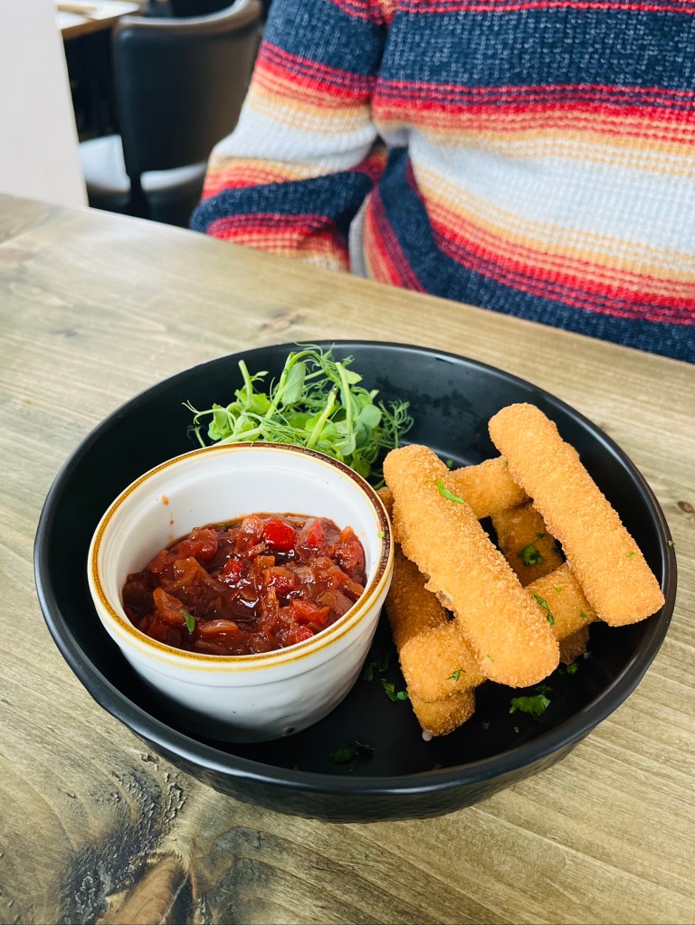 I went for a classic and a personal favourite – Potato Skins with Confit Garlic Mayo and Adam went for the Halloumi Fries with Tomato Salsa. A lovely start to our 3 courses.