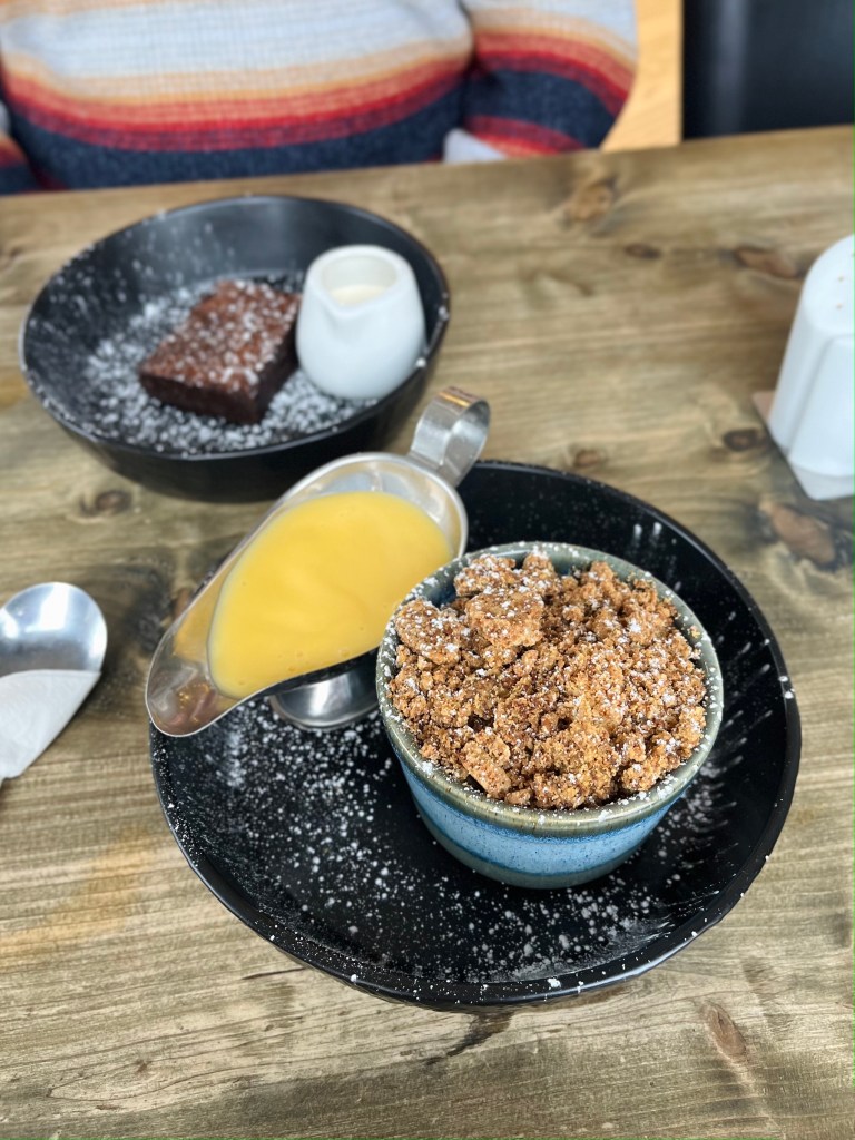 Adam ordered the Chocolate Brownie with cream and I went for their Apple Crumble with custard. Both were tasty and a lovely way to finish our meal.