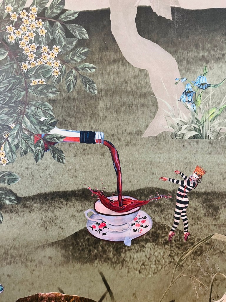 That wallpaper is my favourite thing about The Green Room. Designed by local artist Beth Travers of BOBO1325, the bar features stunning bespoke wallpaper that tells stories of the theatre’s history. The artwork consists of provocative and captivating collections of paintings which all mark key parts of the landmark theatre’s long history. My favourite is the story behind the teacup – Way back when, you weren’t actually allowed to drink alcohol in the theatre so people used to sneak gin in teacups instead! ICONIC.